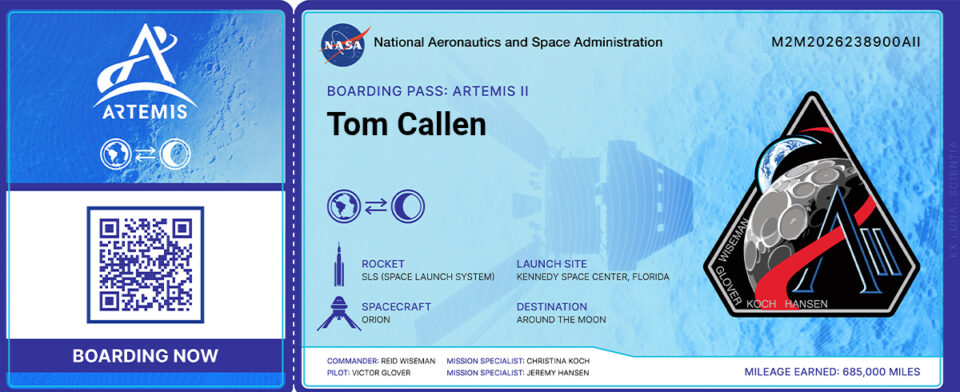 Eftersom saker och ting är försenade betyder det att du fortfarande kan registrera ditt namn (som jag gjorde) för att få ett GRATIS digitalt ”boardingkort” för Artemis II och få det lagrat tillsammans med tiotusentals andra på ett SD-minneskort ombord på Orion Crew Module för när (någonsin) den flyger runt månen!